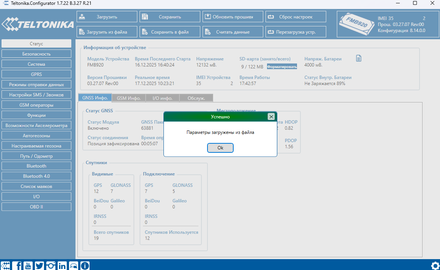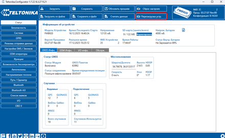 В конфигураторе отобразится модель прибора, его IMEI и версия прошивки. Если нажать на эту активную кнопку, конфигуратор загрузит настройки.