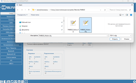 Нажимаем «Загрузить файл» (не путать с просто «Загрузить»!!!) и выбираем файл «FMB920_Wialon.xml» (в zip) или «FMB920_Gelios.xml» (в zip):