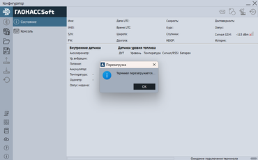После подтверждения записи конфигурации в трекер появится окошко «Перезагрузка»